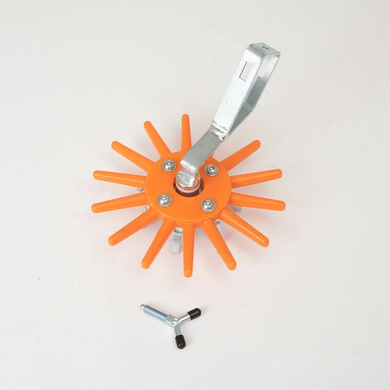 Set of two finger weeders, upright brackets, and Y bolts. Does not include mounting arm or toolbar (both required for use). Pliable fingers. For soft or sandy soil. Orange. NOTE: For use with the Terrateck Double Wheel Hoe only. Also available in a model designed for standard (medium to heavy) soil.
