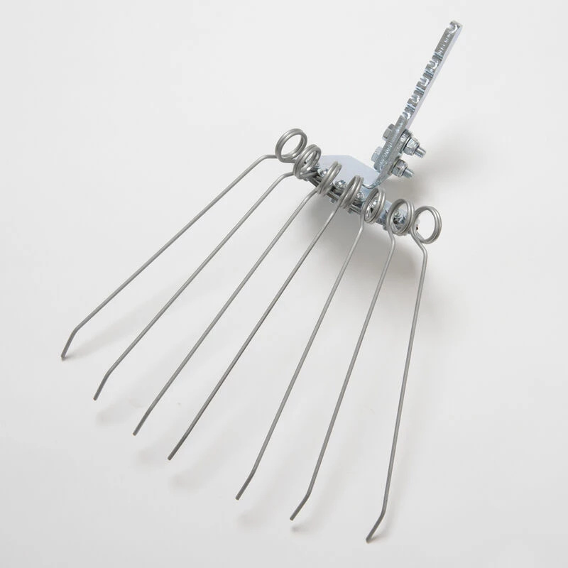 Flexible tines uproot small and thread-stage weeds by scratching the soil surface. Best used on loose, lightly crusted soils without long stem or straw debris. Spring Tine Harrows can be used with other cultivation attachments for more complete weed management. Only for use with Terrateck Wheel Hoes. Secondary Tool Mount, 24″ Tool Bar, and Tool Support Clamps are needed and sold separately. Includes seven tines with mounting screws, and support base with adjustable mounting arm. Sold individually. Made in France by Terrateck.