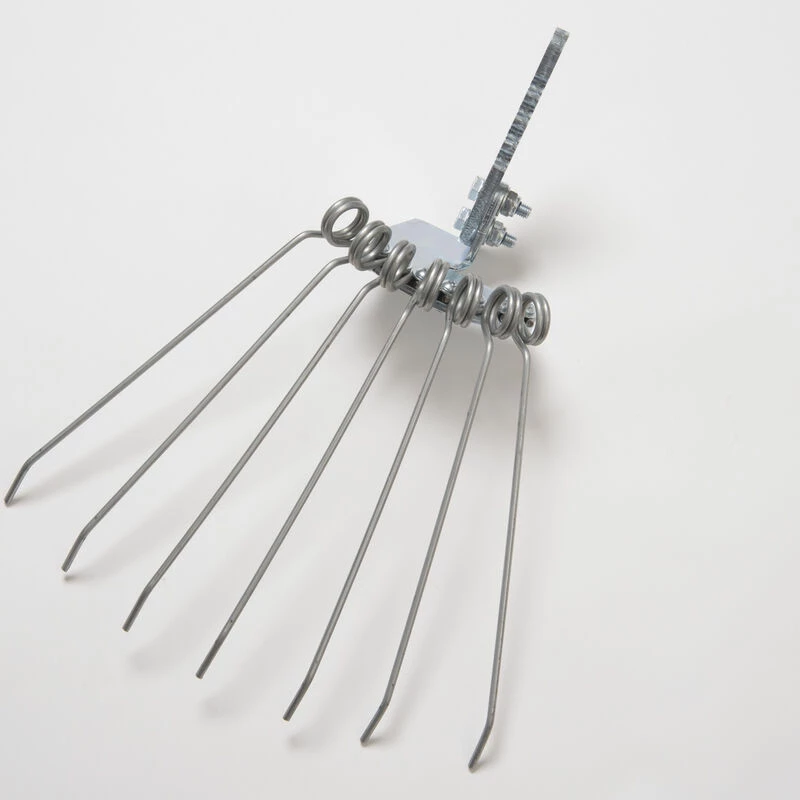 Flexible tines uproot small and thread-stage weeds by scratching the soil surface. Best used on loose, lightly crusted soils without long stem or straw debris. Spring Tine Harrows can be used with other cultivation attachments for more complete weed management. Only for use with Terrateck Wheel Hoes. Secondary Tool Mount, 24″ Tool Bar, and Tool Support Clamps are needed and sold separately. Includes seven tines with mounting screws, and support base with adjustable mounting arm. Sold individually. Made in France by Terrateck. NOTE: Heavy Tooth Spring Harrows are only recommended for working in areas with coarse gravel.
