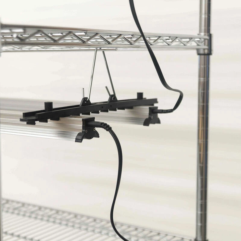 Unique design for mounting more than one light over your growing area. Holds up to seven strip lights at once for getting the right amount of light to your plants. Compatible with the Strip Light Stand (#8346) and Hang It Adjustable Hangers (#8349). Includes a pair of brackets with wire hooks for mounting SunBlaster T5HO and LED Strip Lights. Each bracket measures 14 1/8″ L x 1 1/8″ W x 1 1/8″ H.
